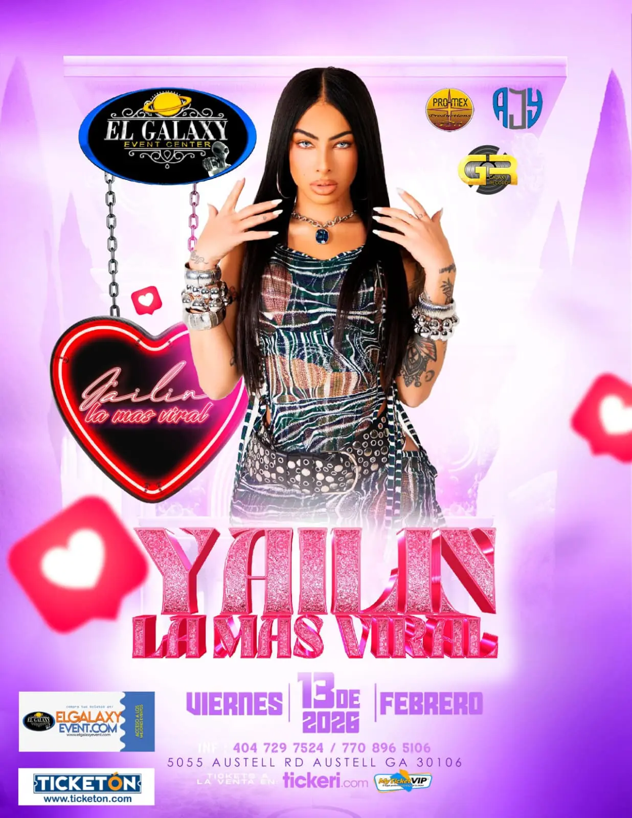 Prepárate para una noche explosiva llena de energía, ritmo y espectáculo con la presentación en vivo de Yailin La Más Viral en El Galaxy Event Center. Este viernes 13 de febrero de 2026, una de las artistas más virales del momento llega para encender el escenario con sus mayores éxitos y una puesta en escena que promete una experiencia inolvidable.